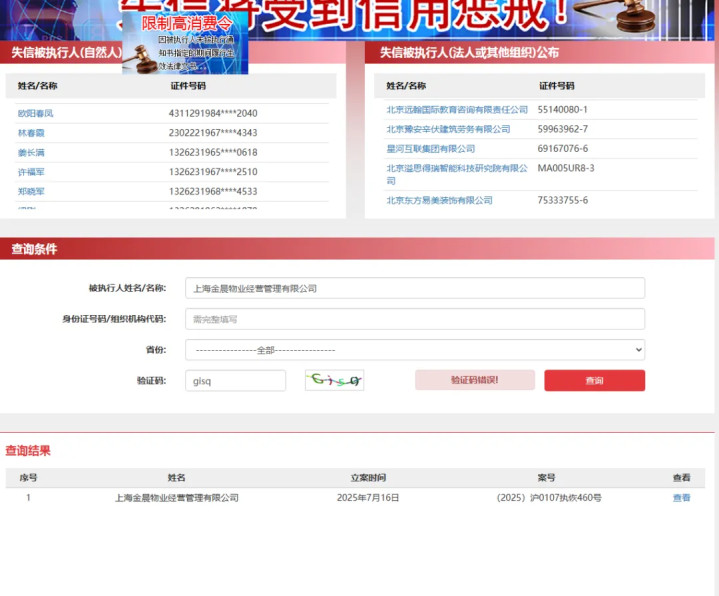 更严重的是,碧桂园生活服务集团多家子公司上海金晨物业经营管理有限公司、天津泰达城投物业管理有限公司和天津市滨海碧桂园生活服务有限公司均因“有履行能力而拒不履行生效法律文书确定义务”被纳入失信被执行人名单,且案件均标注“全部未履行”。