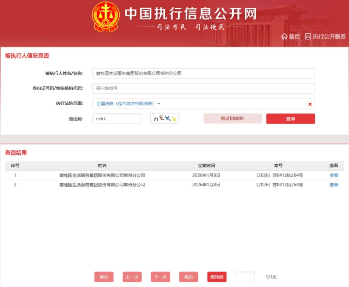 中国执行信息公开网显示,仅碧桂园生活服务集团旗下分公司就有15条被执行人记录。常州、扬州、海口、郑州、连云港、珠海、黄冈、临泉、田东等分公司均在2026年1月新增被执行人记录,单条被执行金额在几万元之间。